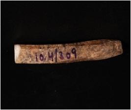 | Description / विवरण | Bone point, tapered on both ends, rectangular in section, smooth and polished surface with uneven shape. |
