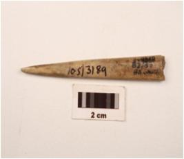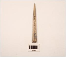 | Description / विवरण | A charred bone point polished proximal end slightly chipped off broken distal end smooth surface. |