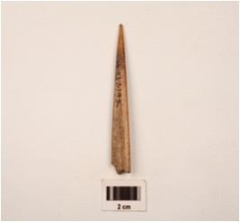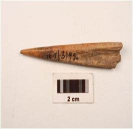 | Description / विवरण | A broken pone point polished intact proxmal end partly smooth surface and rest is rough visible hollow side. |
