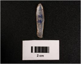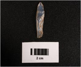 | Description / विवरण | Microlithic blade on chalcedony, mid ridge on dorsal, flat ventral, surface covered with dust, duffuced bulb on proximal end. |