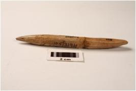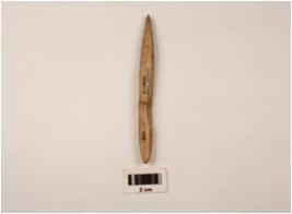 | Description / विवरण | A bitacial bone point polished one sharper end than other uneven surface broken from nuddle rejoined . |