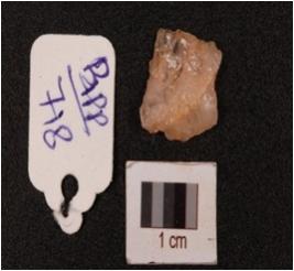 | Description / विवरण | A quartz flake, with irregular shape and sharp edges. |