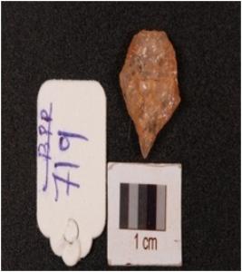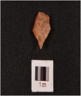 | Description / विवरण | A quartz flake with pointed at one end and irregular shape. |