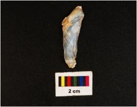| Description / विवरण | Agate blade with bands working edges have retouches striking platform at proximal end. Ridge visible on dorsal side. |
