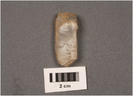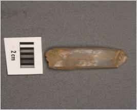 | Description / विवरण | Chalcedony blade core with four scar. Prepared platform and carthex on surface. |