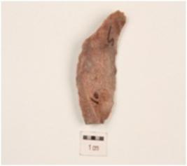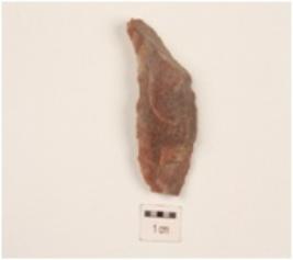 | Description / विवरण | A blade made on chert with ridge on dorsal surface, use-wear marks on working edges, prominent bulb on ventral side and triangular in section. |