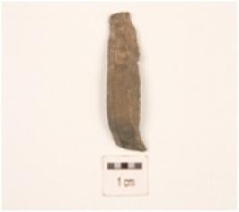 | Description / विवरण | A blade made on chert with double ridge on dorsal use-wear marks on working edges, prominent bulb on ventral side and trapezoidal in section. |