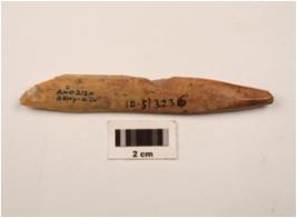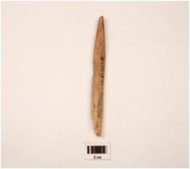 | Description / विवरण | A modified bone point polished, intact proximal end broken distal end, chipped off surface. |