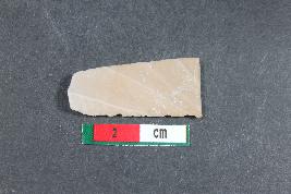 | Description / विवरण | Fragment of a slightly cruved blade with two dorsal ridges having smooth surface. |