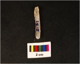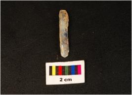 | Description / विवरण | Parallel sided microlithic blade with use wear marks on cutting edges and prominent mid-ridges on dorsal, prominent bulb on proximal end, it has triangular section. |