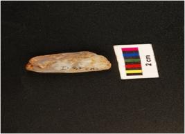 | Description / विवरण | Core with three blade scar, unprepared striking platform, distal end slightly broken on side. |
