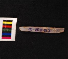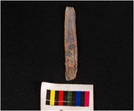 | Description / विवरण | Parallel sided microlithic blade with two ridges on dorsal side, trapezoidal in section and use wear marks along cutting edges. Diffused bulb on ventral side. |