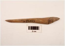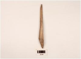 | Description / विवरण | A point made on bone with polished surface, partly broken from tip, triangular in section. |