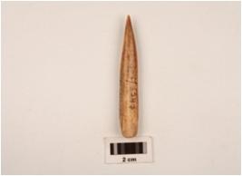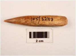 | Description / विवरण | A point made on bone with polished smooth surface, one thickened end. |