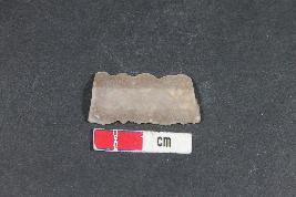| Description / विवरण | Fragment of a blade with two dorsal ridges and retouching are present. |