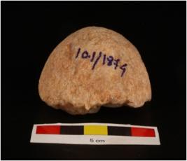 | Description / विवरण | Stone ball, globular in shape and buff in colour. Partly broken. |