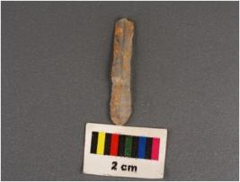 | Description / विवरण | Parallel sided microlithic blade with use-wear marks on cutting edges prominent bulb on proximal end, a promient mid-ridge on dorsal surface, triangular in section. |