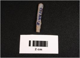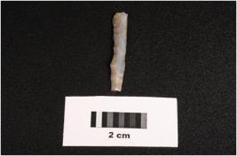 | Description / विवरण | Parallel sided microlith blade with use wear cutting edges and prominent mid ridge on dorsal, prominent bulb on proximal end, smooth surface and triangular in section. |
