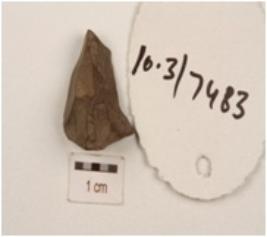 | Description / विवरण | A flake made on quartzite, flake scars on surface and smooth surface. |
