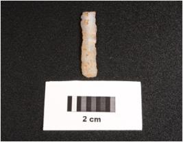 | Description / विवरण | Parallel sided microlithic blade with prominent mid ridge on dorsal and smooth ventral. Use wear marks on cutting edges and triangular in section. |