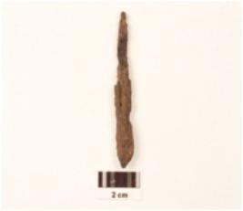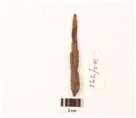 | Description / विवरण | A fragment nail made of iron, rusted and chemically treated pointed at one end, rough and uneven surface, broken from one side. |