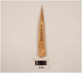 | Description / विवरण | A point made on bone with smooth polished surface, one thickened end. |