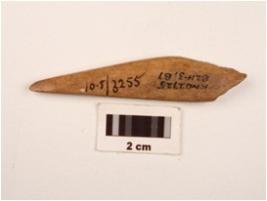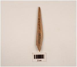 | Description / विवरण | A bone point with polished surface, one thickened end. |