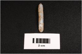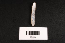 | Description / विवरण | Parallel sided microlithic blade with prominent mid ridge on dorsal. Diffused bulb and triangular section at proximal end. Use wear marks on cutting edges. |