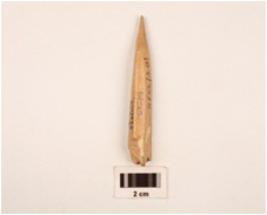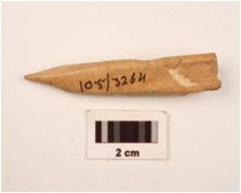 | Description / विवरण | A point made on bone with polished surface, one thickened end, natural colour on surface. |