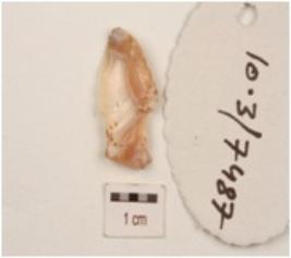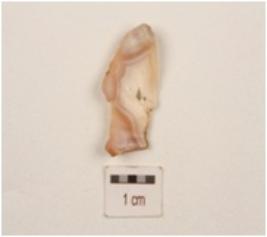 | Description / विवरण | A blade made on agate, use wear marks on working edges, flake scars on one side and trapezoidal in section. |