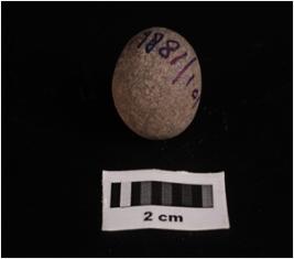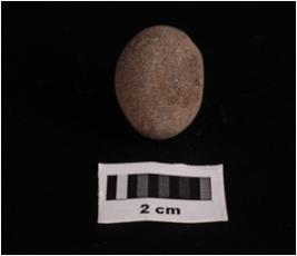 | Description / विवरण | A terracotta circular shaped tiny sling ball, smooth with uneven surface, black in colour and circular in section. |
