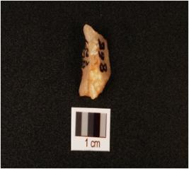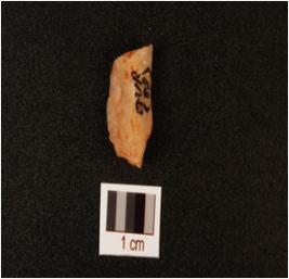 | Description / विवरण | Quartz flake with smooth and flake scars on surface, use wear marks on working edge. |