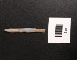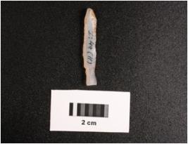 | Description / विवरण | Paralled sided chalcedony blade with two ridge on dorsal, flat ventral side, irregular edges. |