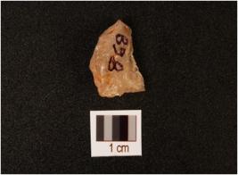 | Description / विवरण | A quartz scraper with use wear marks on working edge and flake scars on dorsal. |