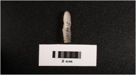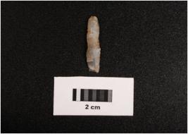 | Description / विवरण | Parallel sided chalcedony blade, flat ventral side. Covered with dust. Distal end. |