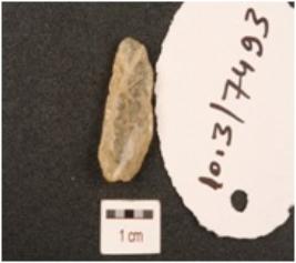 | Description / विवरण | A blade made on quartz, use-wear marks on working edges and planoconvex in section. |