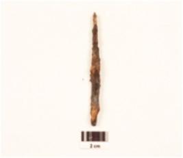 | Description / विवरण | An iron nail fragment long in shape, rusted and very fragile. |
