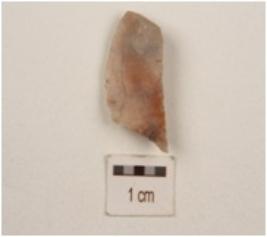 | Description / विवरण | A blade fragment made on chert, use-wear marks on working edges, two ridges on dorsal surface, trapezoidal in section and prominent bulb. |