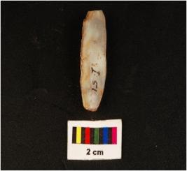 | Description / विवरण | Striking platform on proximal end, three blade scars are visible head treated. |