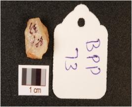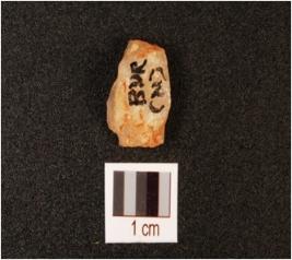 | Description / विवरण | Fragment of flake, made on quartz, flake scars are visible and irregular marks on edges. |