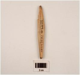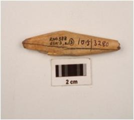 | Description / विवरण | A point made on bone with polished surface, partly broken from pointed end, cracks on surface. |