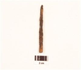 | Description / विवरण | An iron nail fragment long in shape, rusted and cracks are visible. |