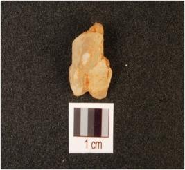 | Description / विवरण | Fragment of quartz flake, ridge on ventral diffused defused bulb and irregular marks on edges. |