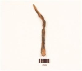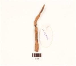| Description / विवरण | An iron object nail long in shape, rusted and cracks are visible. |