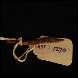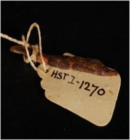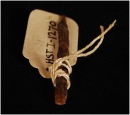 | Description / विवरण | Fragment of copper nail pointed end and square head. |
