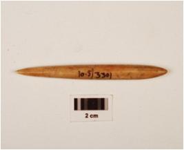 | Description / विवरण | A bone point with polished surface, pointed tip at both ends. |