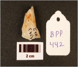 | Description / विवरण | A quartz convex sided end, scraper and prepared platform. |