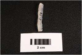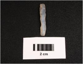 | Description / विवरण | Microlithic blade on chalcelony, prominent mid ridge on dorsal, triangular in section, use wear mark along the cutting edge, smooth ventral. |