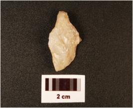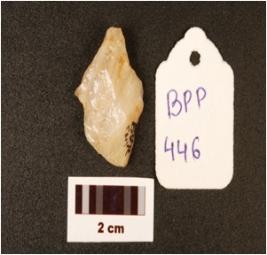 | Description / विवरण | Quartz side scraper, prepared platform, flake scars at dorsal surface and prominent bulb. |