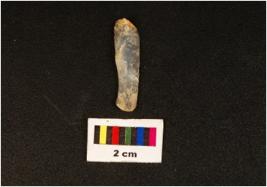 | Description / विवरण | Parallel sided microlithic blade with use ware marks on cutting edges and prominent mid ridge on dorsal. Triangular in section and diffused bulb on proximal end. |